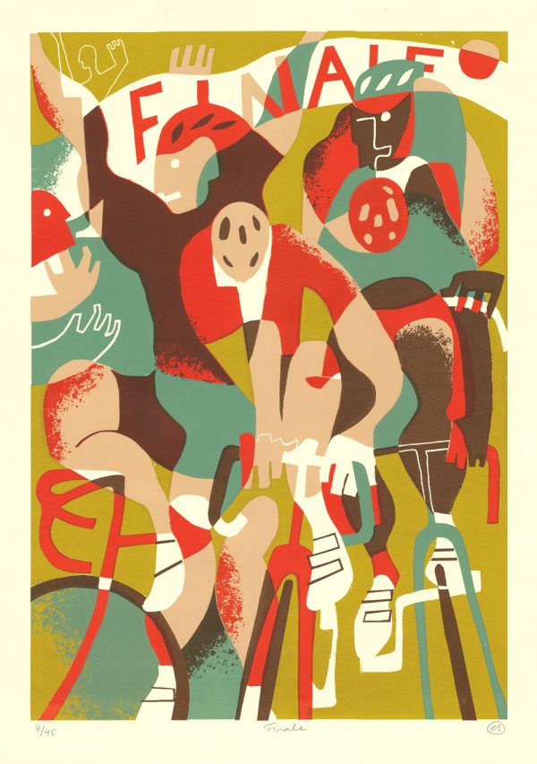 This is a limited edition of 45 screen prints, depicting the tension and drama of the finish line. 70 x 50 cm